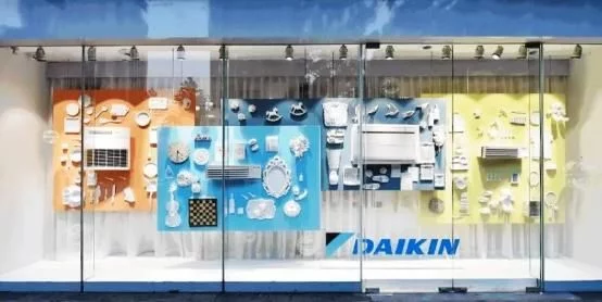 大金空调杭州展厅,运用3D打印技术的橱窗展示,用艺术化的方式向观者展现大金的零部件之美,生动有趣。